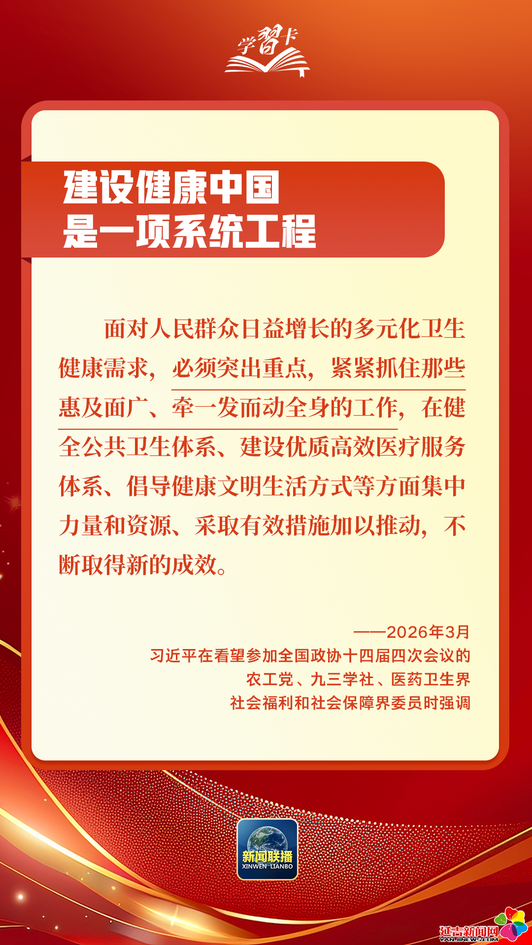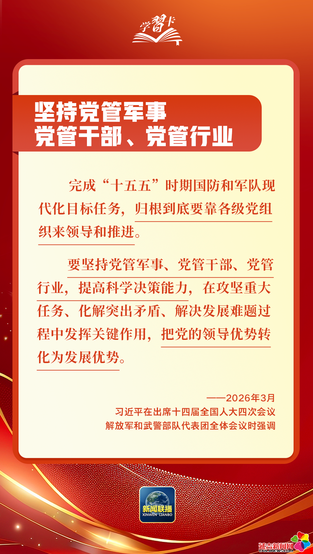 3月5日至7日,习近平总书记先后参加江苏代表团审议、看望全国政协委员、出席解放军和武警部队代表团全体会议,围绕经济大省发展、健康中国建设、政治建军等重大议题作出深刻阐释、提出明确要求,为“十五五”开好局、起好步提供科学指引。