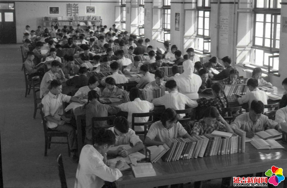1959年,学生们在西迁后的交大校园图书馆阅览室内学习(资料照片)。