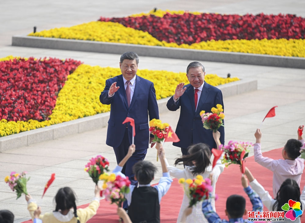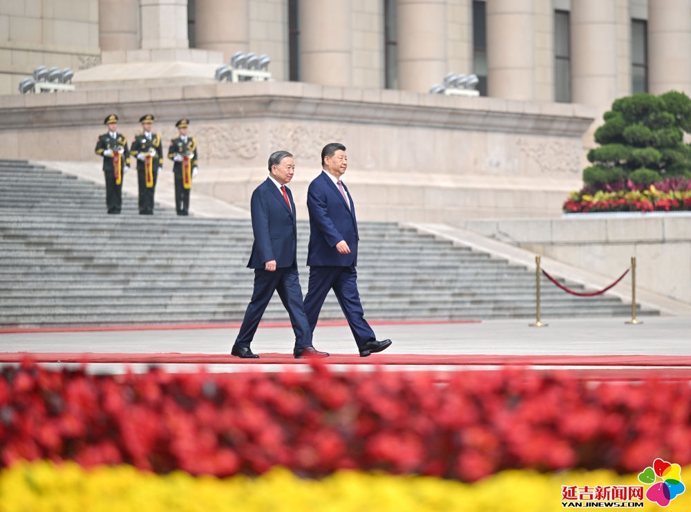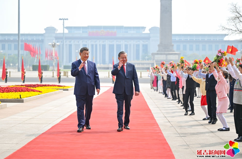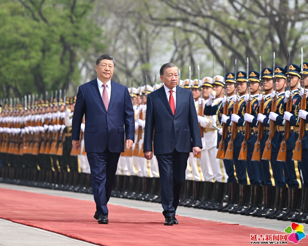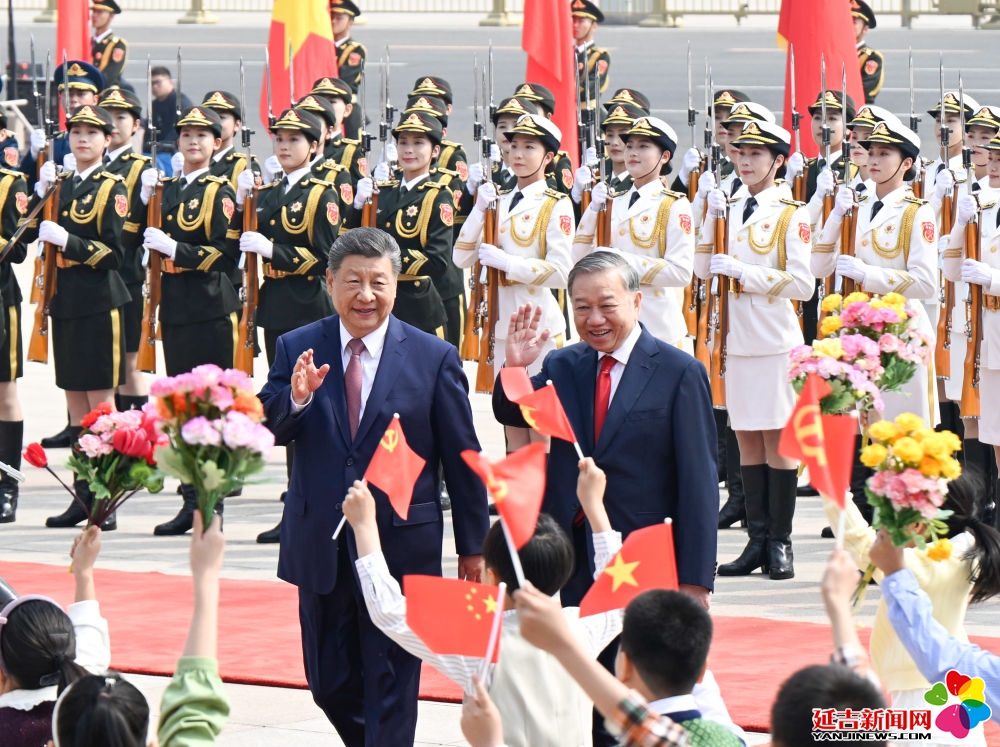 4月15日上午,中共中央总书记、国家主席习近平在北京人民大会堂同来华进行国事访问的越共中央总书记、国家主席苏林举行会谈。这是会谈前,习近平在人民大会堂东门外广场为苏林举行欢迎仪式。新华社记者 燕雁 摄
