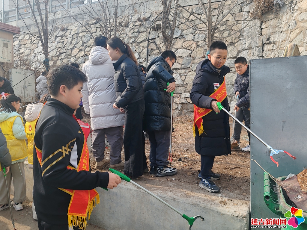 进学街道文明社区联合延吉市北山小学校开展雷锋日环境清洁活动