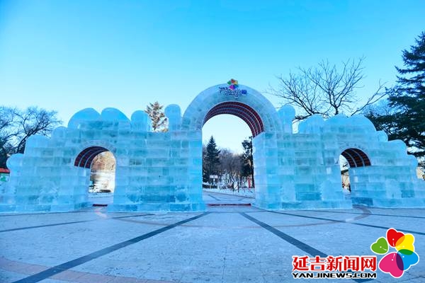 记者在延吉公园看到,这里添置了大型冰雕装饰。造型设计上,被装饰成拱门形状,左右各搭配了一个小拱门,十分壮观。冰雕会在夜晚定时亮起,装扮城市的夜景。