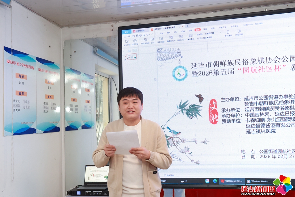 延吉新闻网2月27日讯(记者 李军广)2月27日上午,延吉市朝鲜族民俗象棋协会公园分会成立五周年庆祝大会暨2026第五届“园航社区杯”朝鲜族民俗象棋大赛,在公园街道园航社区会议室开赛。本次活动由延吉市朝鲜族民俗象棋协会、公园街道园航社区主办,棋友们欢聚一堂,以棋会友、共庆五载。