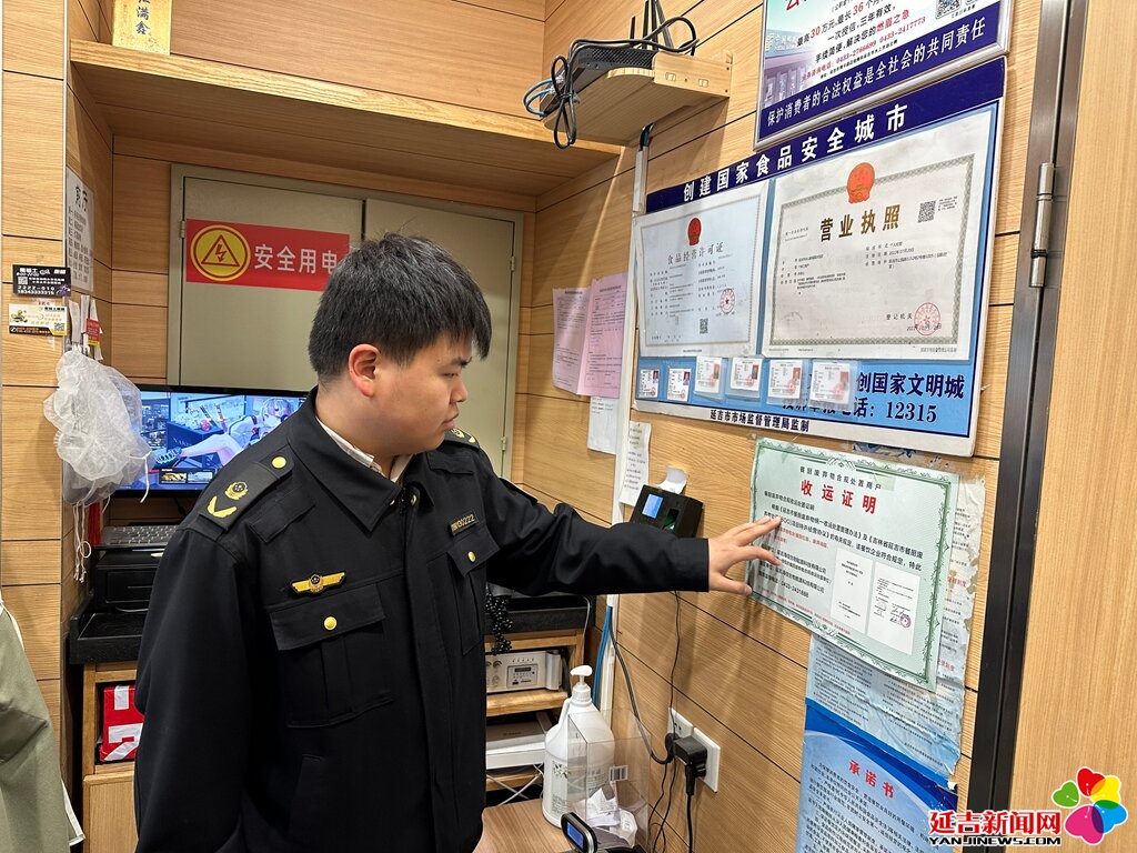 延吉新闻网4月27日讯(记者 金俞成)4月27日,市市场监督管理局延西分局执法人员深入网红墙周边餐饮店后厨,针对节假日消费特点,对各环节进行了细致排查。