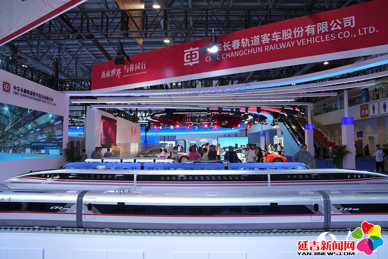 本届博览会“现代化产业馆”上展示的高铁列车。人民网记者 李洋摄