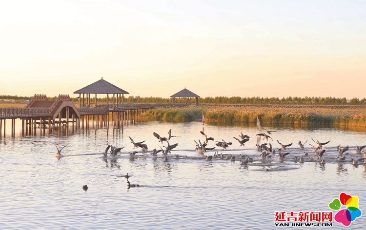 查干湖秋日限定:湖水映金树 雁鸭戏清波