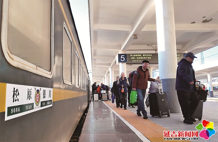 2月24日,2026年返岗务工专列从松原启程,615名吉林油田务工人员搭乘全列卧铺列车前往银川。国铁沈阳局与松原站开辟绿色通道、优化服务,提供“一站式”直达运输,保障务工人员安全便捷返岗。(杨默 吉林日报记者 钱文波 摄)