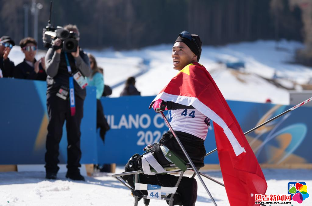 当地时间3月8日,在意大利泰塞罗举行的米兰-科尔蒂纳冬残奥会冬季两项男子中距离(坐姿)比赛中,中国选手刘子旭获得冠军,毛忠武获得亚军。