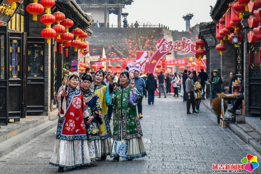 游客在山西平遥古城换装游玩。新华社记者曹阳 摄