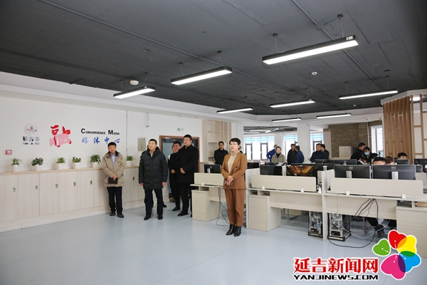 在延吉锦星文化科技有限公司,调研组观看了企业宣传片,详细了解企业经营发展情况。随后,调研组来到延吉市融媒体中心,参观了延吉市融媒体指挥调度中心、交通之声、阿里郎之声、音乐教室,了解融媒体中心建设情况。