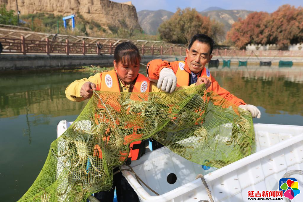 时下,位于黄土高原的甘肃省定西市安定区鲁家沟镇养殖的大闸蟹丰收,蟹农们趁着晴好天气捕捞、分拣、打包,供应市场。