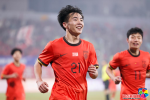 11月30日,中国队球员帅惟浩(中)在比赛中庆祝进球。  当日,在重庆举行的2026亚足联U17亚洲杯预选赛小组赛中,中 ...