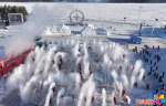 12月21日在北极村七星广场拍摄的泼水成冰表演(无人机照片)。  12月21日,漠河第十六届冬至文化节在黑龙江省漠河市 ...